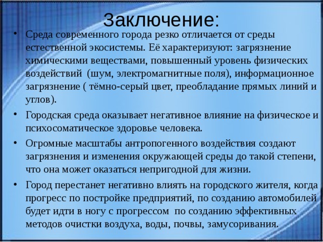 Влияние на городскую среду